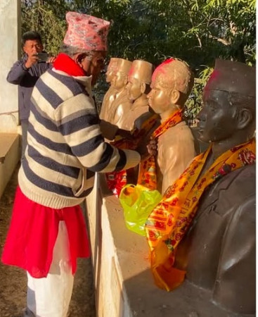 जिसस प्रमुख भट्टराईद्वारा शहिदको शालिकमा मालार्पण